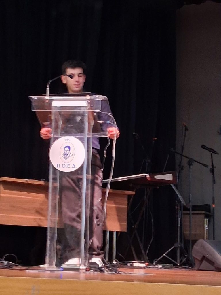 Εκ μέρους των βραβευθέντων αντιφώνησε ο πρωτεύσας απόφοιτος της Αγγλικής Σχολής Λέανδρος Ηλία, ο οποίος αναφέρθηκε με συγκίνηση στα βιώματα που του κληροδότησε η οικογένειά του από τον κατεχόμενο τόπο καταγωγής του.