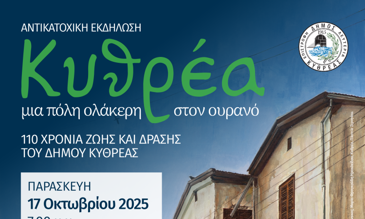 Η εκδήλωση πραγματοποιείται στο πλαίσιο του τριήμερου εκδηλώσεων μνήμης Κυθρέας, 17-19 Οκτωβρίου 2025.
